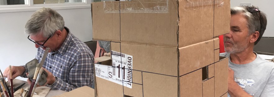 Rachel Fooks has started running workshops for people wanting a deeper knowledge of Pottety and who want to explore the design process and make more challenging creations. Phillip and David are working on a sculpture, making a maquette in cardboard first – can’t wait to see this made in clay!